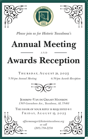 CLAIRE FRIDAY received the 2025 Emeritus in recognition of the many years of dedicated service and generous support of Historic Tuscaloosa.